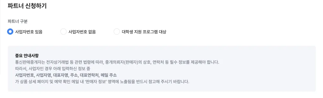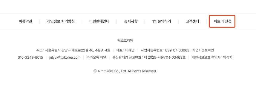 사이트 하단에 “파트너 신청” 링크를 클릭합니다.